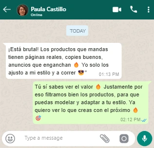 Cada día recibirás 3 productos digitales que ya están vendiendo, con su página de ventas, gancho, estructura y análisis. Están listos para que los modeles y vendas tú también.